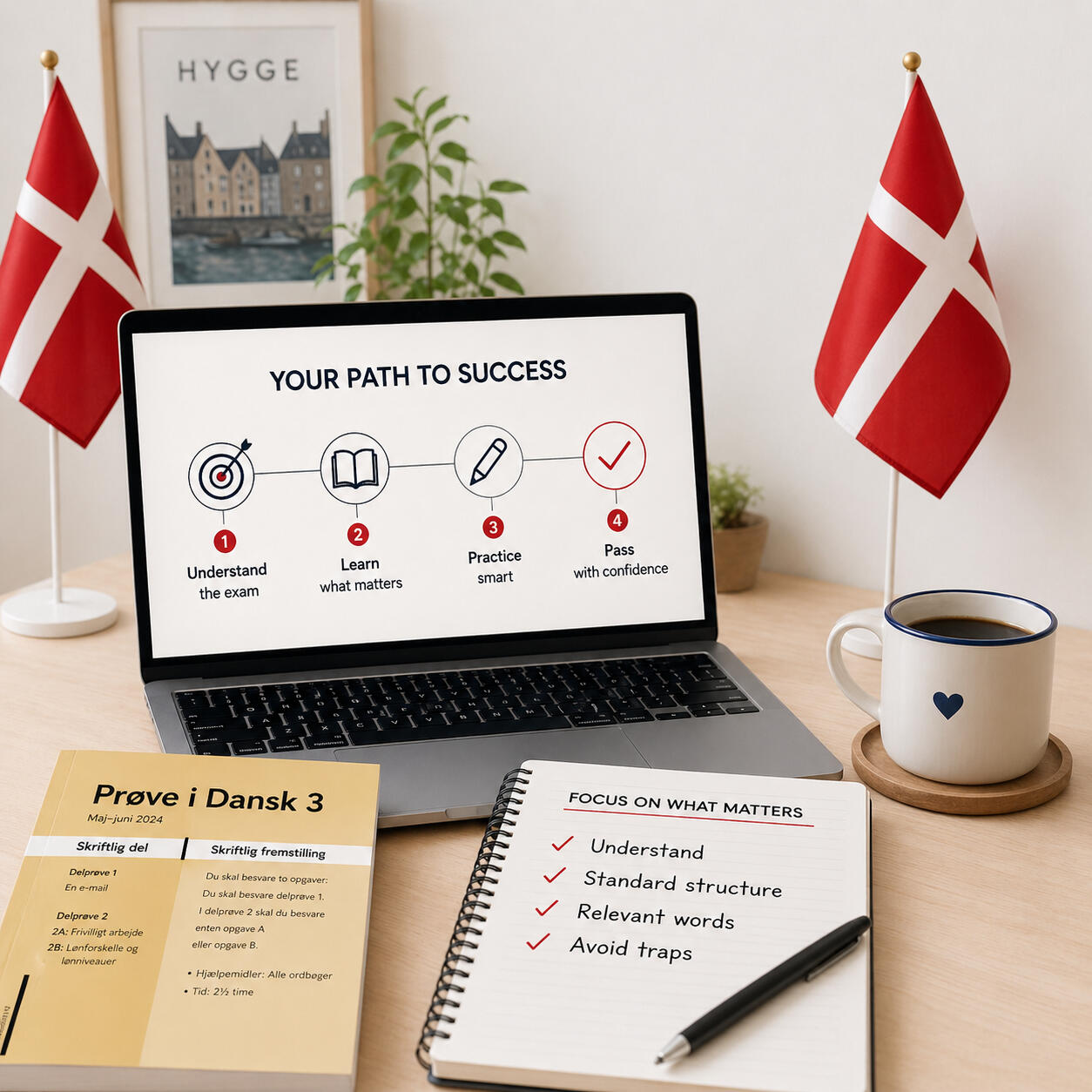 Online lessons designed to get you through the official Danish language exams such as Prøve i Dansk 3 and Studieprøven in the most effective and easy way